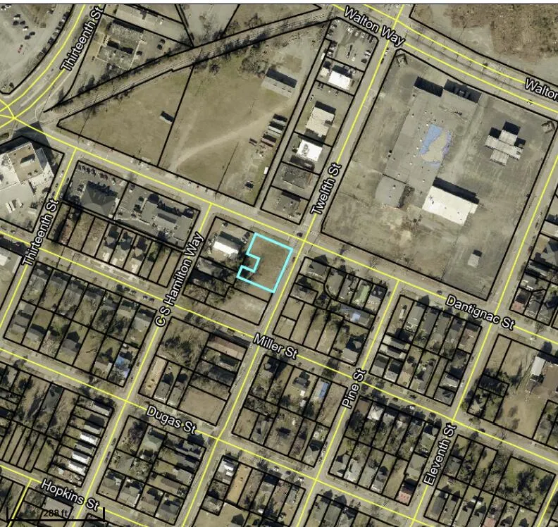 This commercial corner lot belongs to a non-profit. It is located at the corner of 12th St. and D'Antignac St, near the medical district.